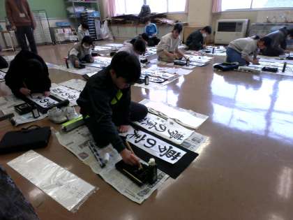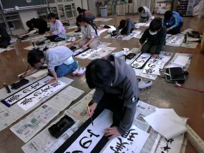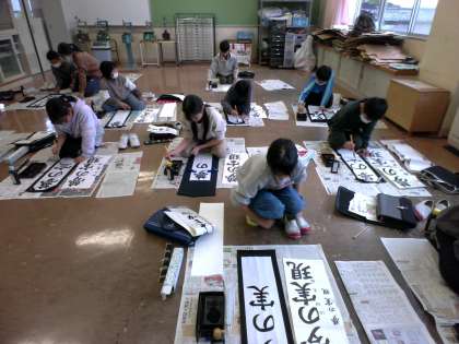 書初の練習が始まりました。今年の字は「夢の実現」です。どの子供も集中して学習に取り組んでいました。