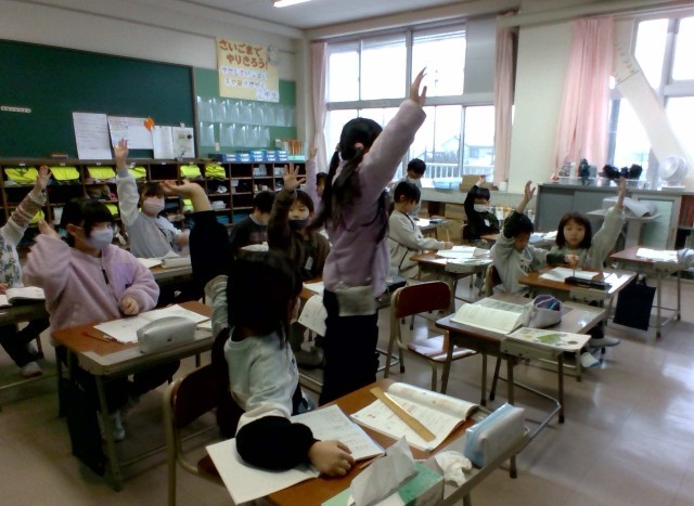 3学期の学習がスタートしました。自分の考えを伝えようと、たくさん手が挙がっていました。3学期もやる気いっぱいの子供たちです。