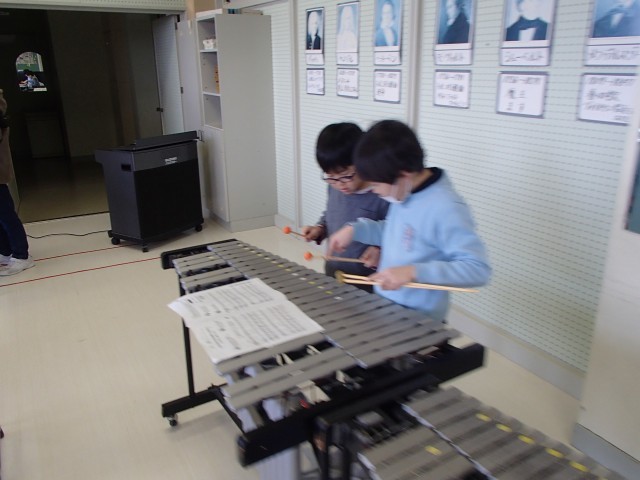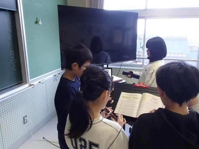 音楽科の時間には、「茶色のこびん」の合奏を行いました。担当楽器が同じ仲間と、アドバイスをしたり教え合ったりしながらパート練習に取り組みました。