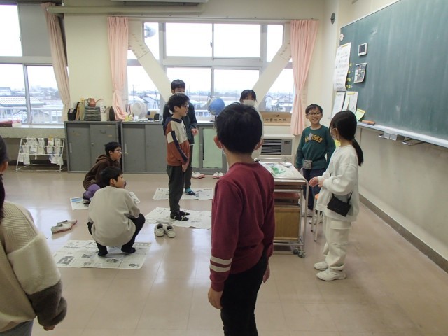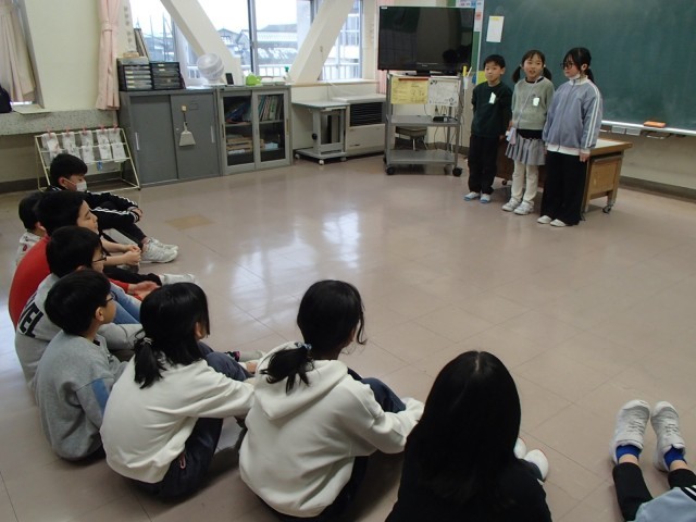 2年生が考えた遊びを、縦割り班のみんなと一緒に行いました。どの班も、とても楽しそうに活動していました。教室で行った振り返りでは、「みんなが楽しそうに遊んでくれて嬉しかった」「喜んでくれたから、来年はもっと楽しい遊びを考えたい」と話していました。