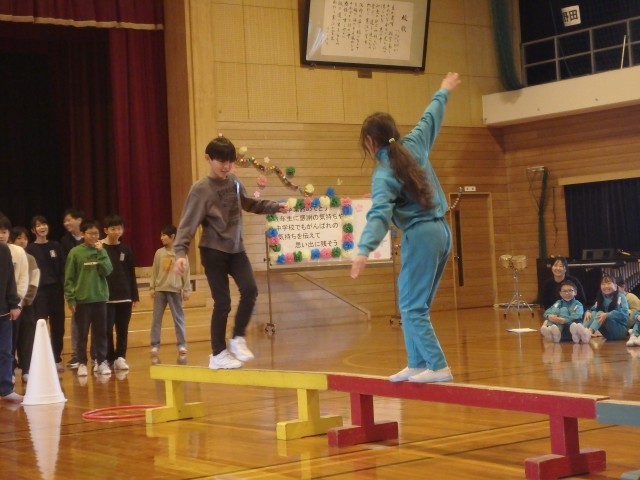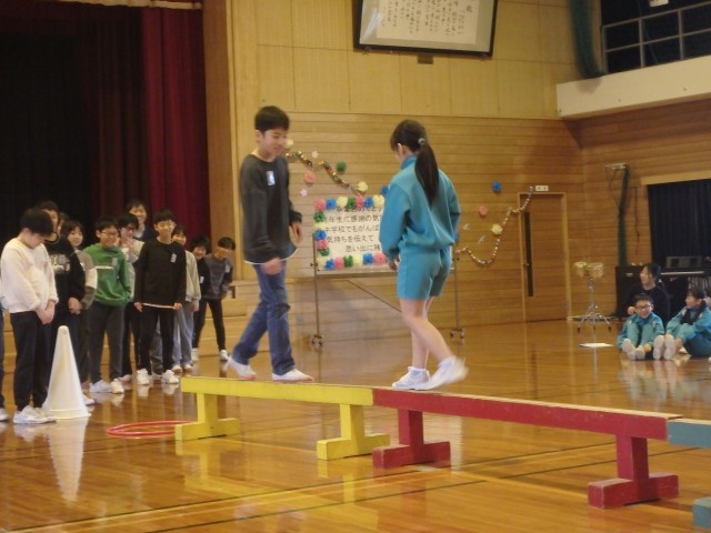 6年生の卒業を祝う集会の出し物で、3年生は6年生と「どんじゃんけん」を楽しみました。手加減をしてくれる6年生もいて、6年生の優しさを改めて感じることができました。