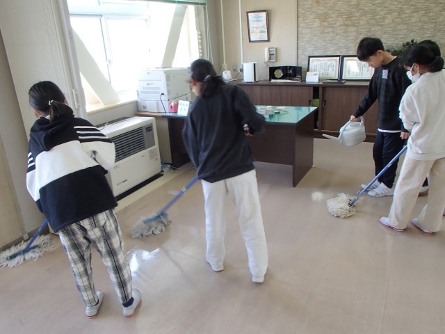 今日は、6年間お世話になった学校に感謝の気持ちを込めて、音楽室などのワックスがけを行いました。