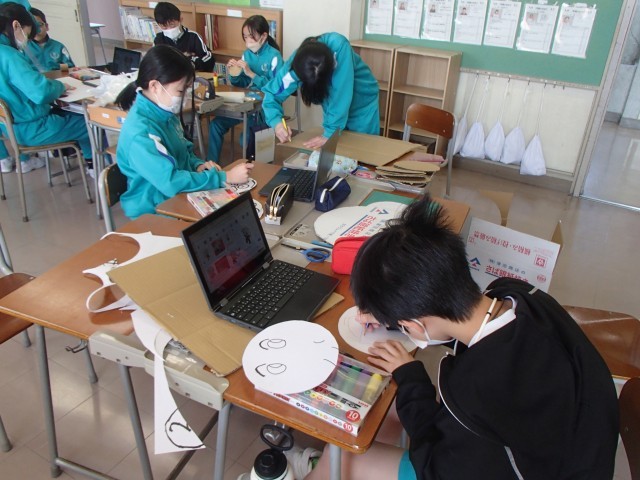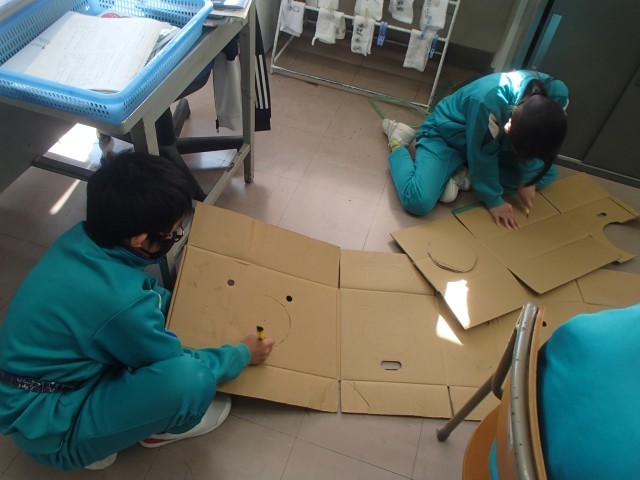 運動会の応援のために、小道具づくりに取り組んでいます。