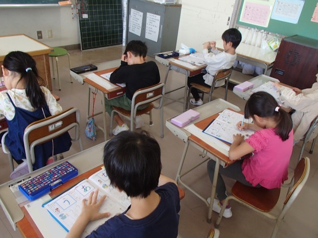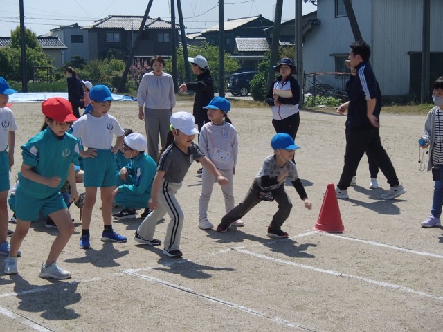 ひらがなの練習や運動会に向けた全校運動をがんばりました。