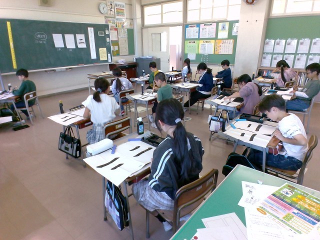 3年生の学習で、半紙に「二」という字を書きました。初めて半紙に書く学習ということで、集中して取り組んでいました。