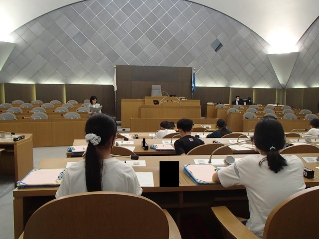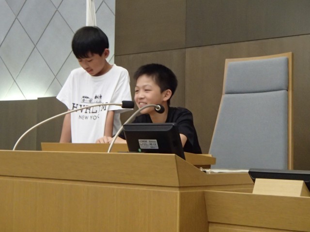 議長席に座ったり、議員席に座りマイクを使って質問に答えたりしました。