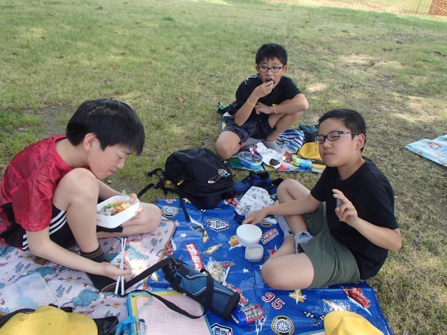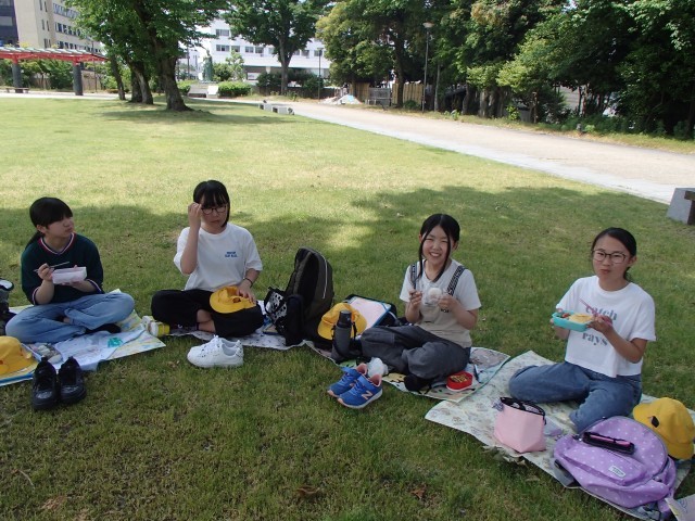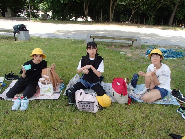 暑い中でしたが、木陰の下、心地よい風を感じながらお弁当を食べることができました。