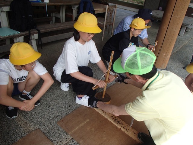 最後には火起こしを体験しました。煙が出るまで、どれだけ時間がかかるか試している子もいました。