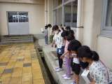 お昼の歯みがきは、洗面所が混み合わないよう、順番にしたり間隔を開けたりして磨い...