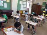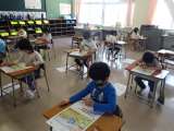 今日の算数は、テストに取り組みました。机をテストの形にしたり、配られたらすぐ、...