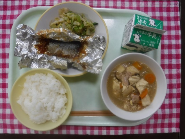 7月15日(火)今日の給食 公開日 2025/07/16 更新日 2025/07/16 本日の給食 今日の献立は、ご飯、牛乳、さばの銀紙焼き、ごまびたし、豆腐の野菜あんかけです。豆腐の野菜あんかけ、野菜たっぷり、豆腐もたっぷりでとてもヘルシーです。