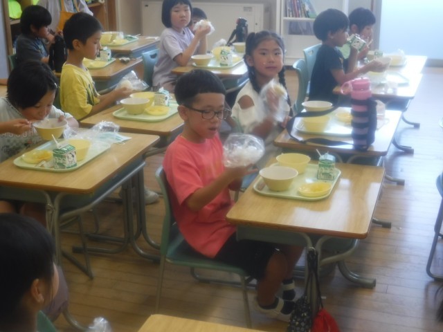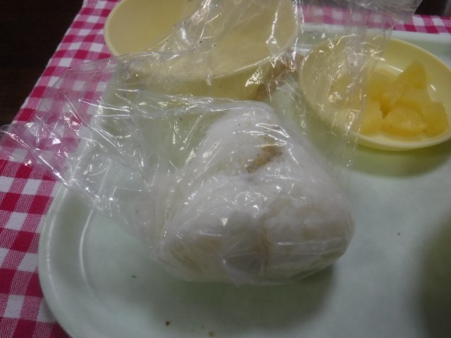 自分で握ったおにぎりを、おいしそうにほおばっていました。