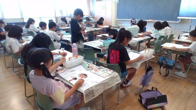 図画工作科「わすれられない気持ち」 公開日 2025/09/04 更新日 2025/09/04 4年生 図画工作科では、心に残った夏休みの思い出を表現しています。自由な表現でのびのびと楽しみながら描いています。