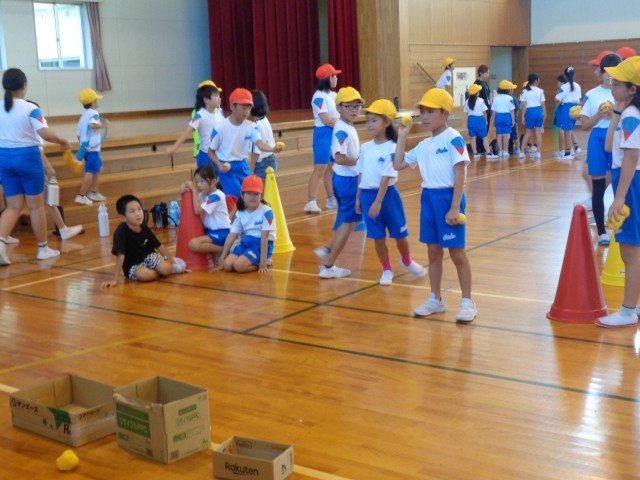 ルール説明の後は、仲良し班に分かれて早速練習を行いました。笑顔で取り組んだり、アドバイスや応援したりする姿がたくさん見られました。