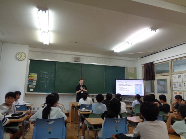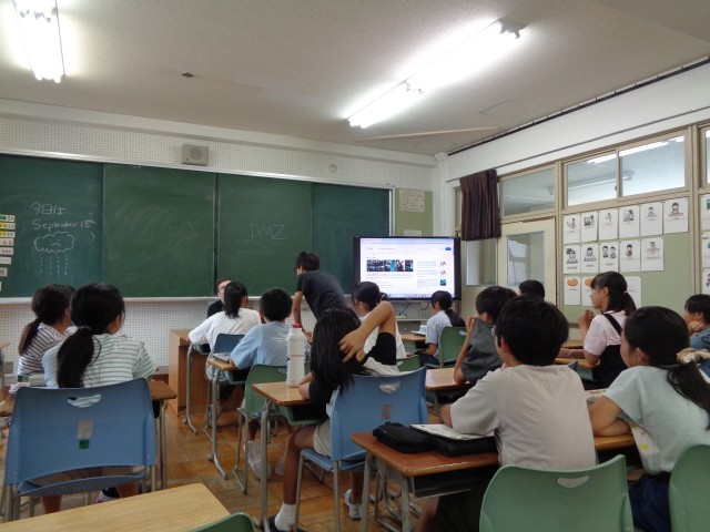 今日の外国語の学習では、ALTから日本や世界の歴史について教えてもらいました。外国での出来事や有名人に興味津々の子どもたち。興味をもったことに対して、習った英語を用いて質問する様子も見られました。