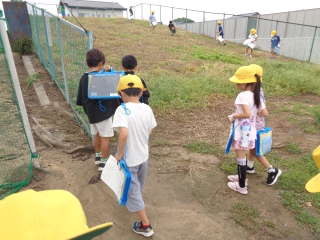 生活科の学習で、むしとなかよくなるために、グラウンドでむし探しをしました。