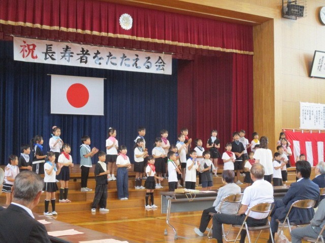9月23日(火)2,3年生 長寿者をたたえる会 公開日 2025/09/24 更新日 2025/09/24 2年生 2,3年生が、長寿者をたたえる会に出演しました。笑顔で、長寿者の方々に歌のプレゼントができました。