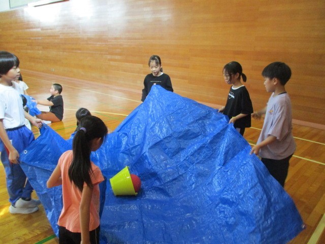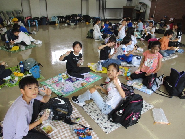 1日目午前中のイニシアティブゲームでは、班のみんなで声をかけあって、さまざまなゲームをクリアしていきました。その後は、家からもってきたお弁当をみんなでおいしく食べました。
