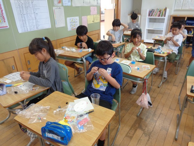図画工作科では、「空き容器のへんしん」を学習しています。実際に使うことを意識しながら、思い思いの入れ物を作っています。仕上がりが楽しみです。