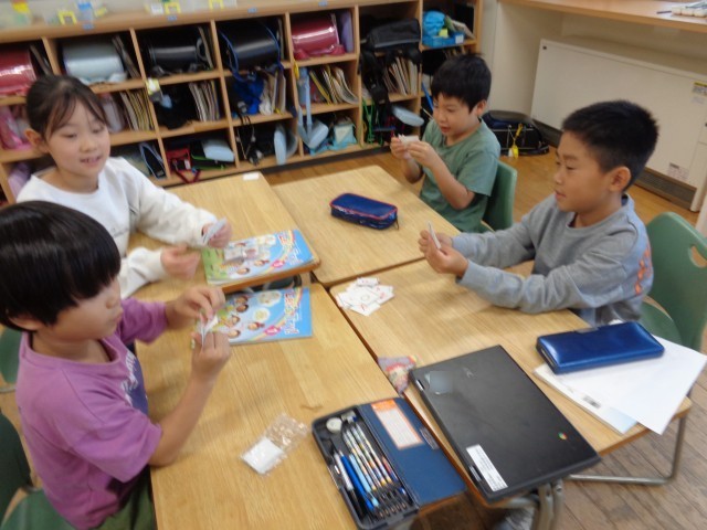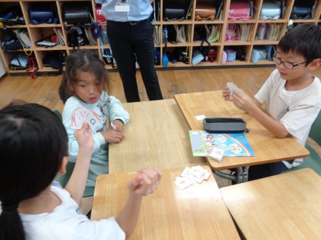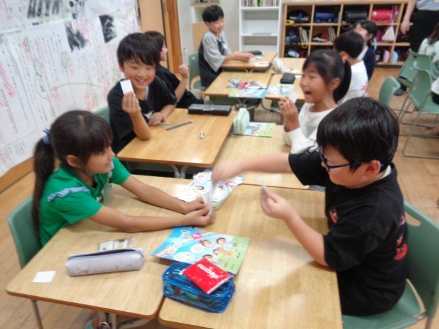 外国語活動では、アルファベットの学習をしています。今回は、カードを使って「アルファベットじじぬき」をしました。大盛り上がりで、楽しく学ぶことができました。