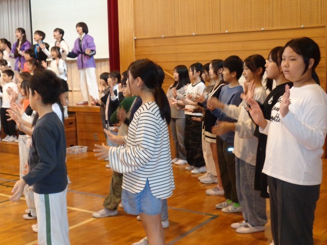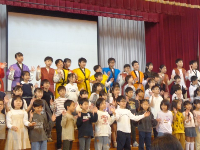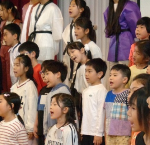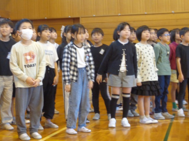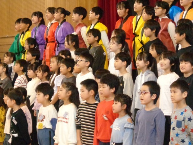 学習発表会の締めくくりは全校合唱でした。「にじ」は美しく、「校歌」は元気いっぱいに歌いました。これからも全校みんなの心を合わせて、いろいろなことにチャレンジしていきます。