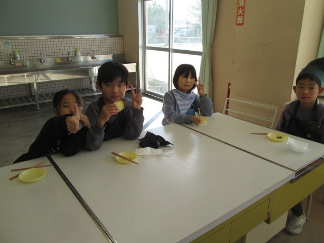 11月20日(木)、先日みんなで掘ったさつまいもを食べました。みんなで順番に芋を洗うと、きれいな紫色になりました。今年は採れた数が少なかったのですが、ホットプレートで焼いていただきました。上手に焼けて、ほくほくの芋を食べることができ、美味しかったです。みんなで食べるとより一層美味しくいただくことができました。