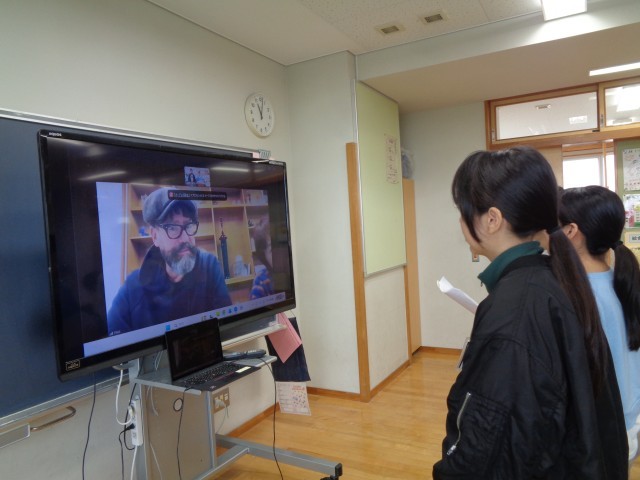 「ガラス作家さんって甘い食べ物は好きかな」「ガラス作家さんがまだ行ったことのない場所を紹介したいな」など、ガラス作家さんが喜んでくれる発表をすることができるように、オンライン通話で好きな食べ物や場所、季節などを質問しました。「英語で話すことは緊張したけれど、伝わったときはうれしかったよ」「本番はもっと伝わりやすいようにジェスチャーをつけたいな」など、本番へのやる気が高まっています。