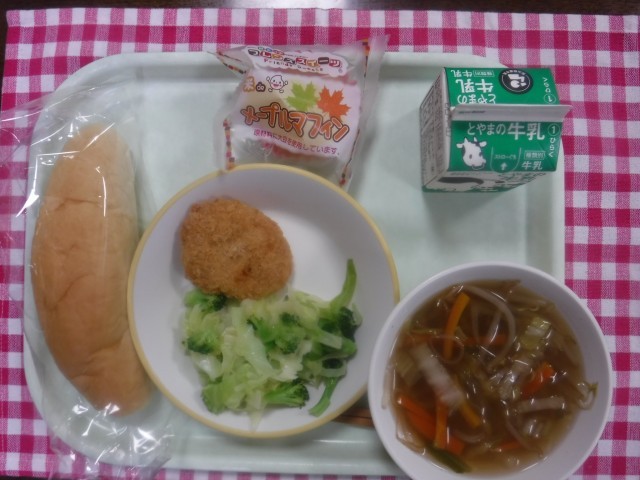 共通しているのは、コッペパン、牛乳、そえ野菜、春雨スープです。