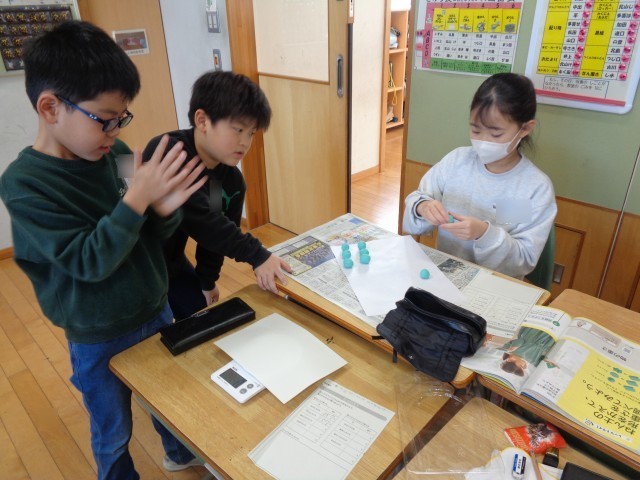実際に調査したり、実験して確かめたりしながら学びを進めている3年生です。