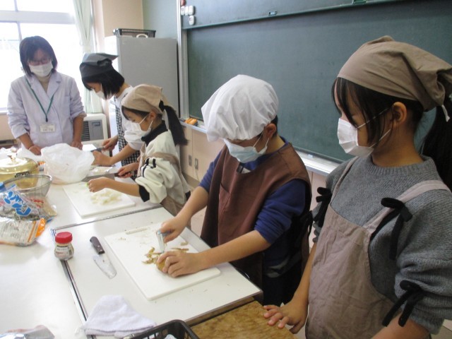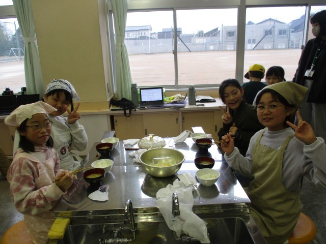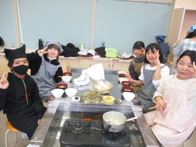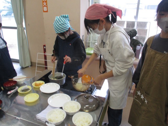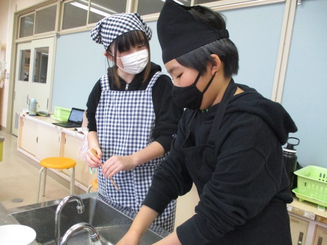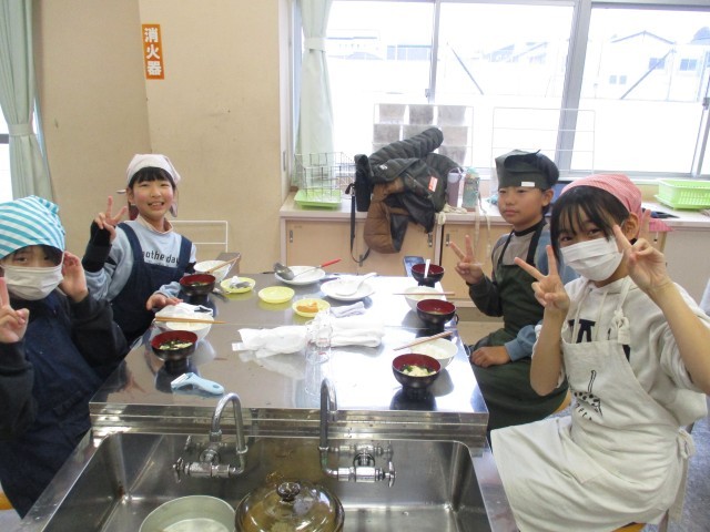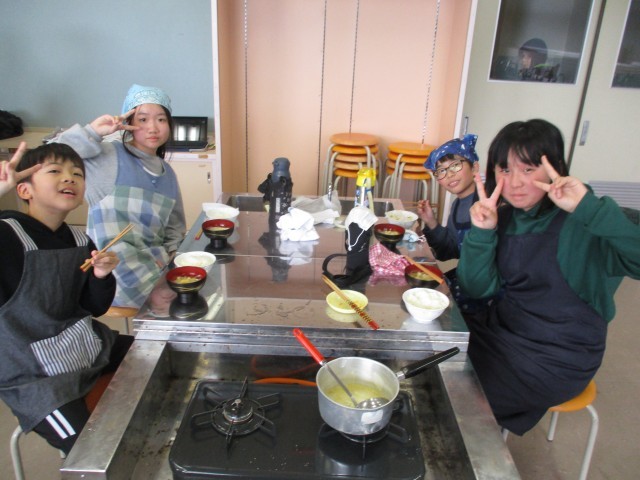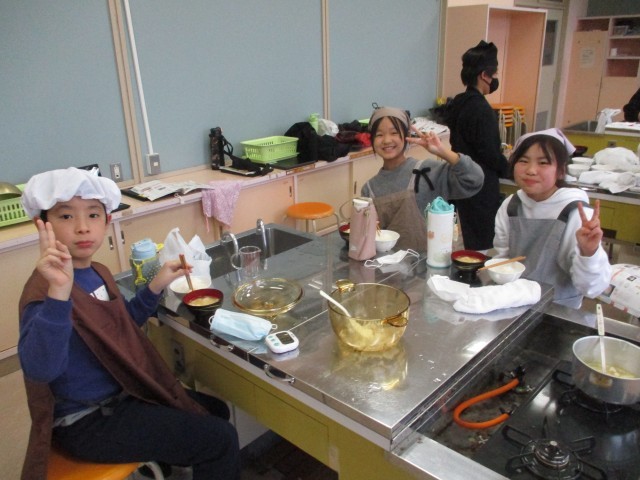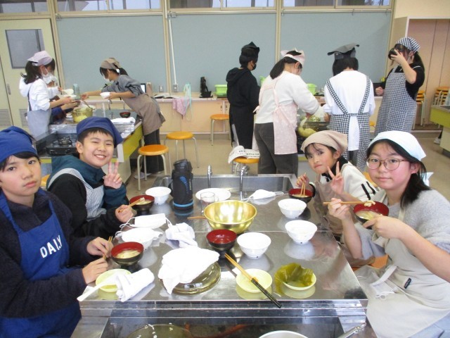 今日の家庭科では、ご飯を炊き、味噌汁を作りました。調理実習に慣れてきた5年生は、自分たちで調理の計画を立て、本当に手際よく作業をしていました。味噌汁は、出汁、味噌、具材を自分たちで選んで組み合わせていたので、どの班も味に違いがあって面白かったです。