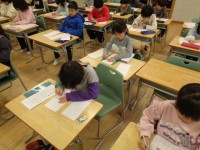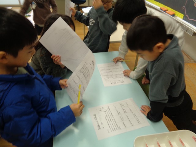 友達がどのような冬休みを過ごしていたか、名探偵ビンゴで楽しみました。質問を繰り返して、当てはまる人のサインを集めて、冬休みのことを振り返りました。