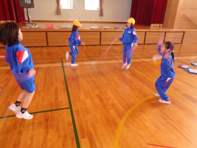 体育科の学習では、縄跳びカードを活用して、縄跳びをがんばっています。新しい技に挑戦したり、回数を増やしたりしています。
