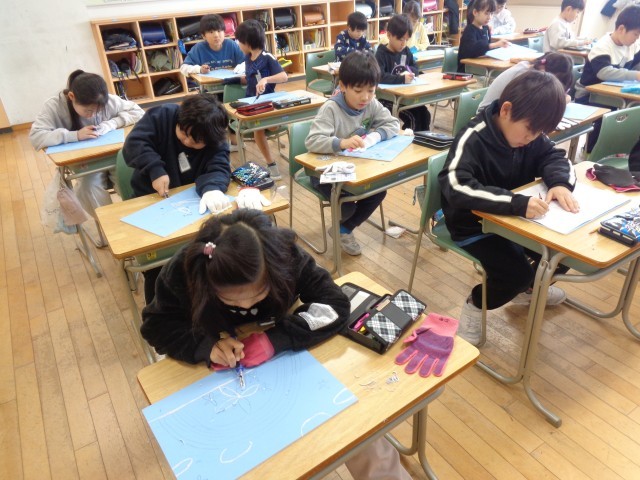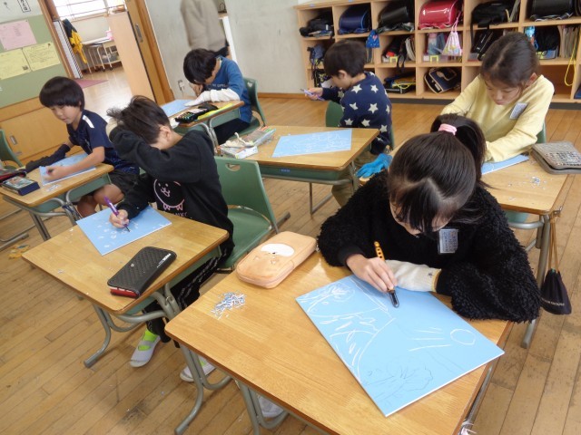 図工の授業では、「ネイチャー~自然を表現しよう~」をテーマに、版画に挑戦しています。子供たちにとって初めての彫刻刀。安全に留意し、丁寧に掘り進めていました。完成が楽しみです。