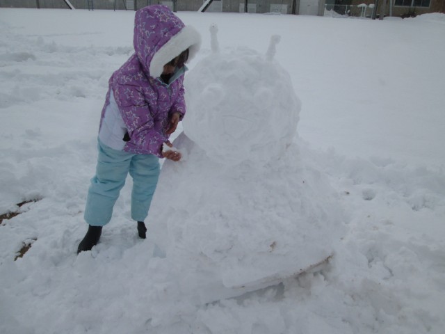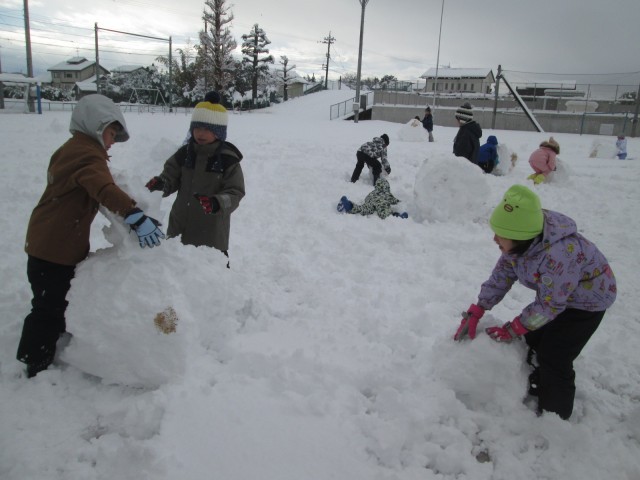 2年生は生活科で雪遊びをしました。寒い季節ですが、雪が降れば「雪あそび」という体を動かしてできる楽しいあそびがあります。今日の雪はふわふわで、たくさんの子供たちが雪の上で寝ころび、「ふわふわの雪は気持ちがいいな」と感じていました。みんなで協力して大きな雪玉を作ったり、できた雪玉で雪だるまや乗り物を作ったりして、雪遊びを満喫しました。
