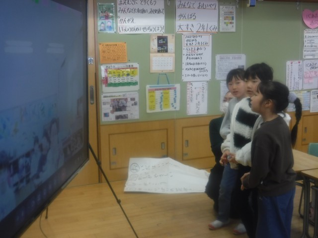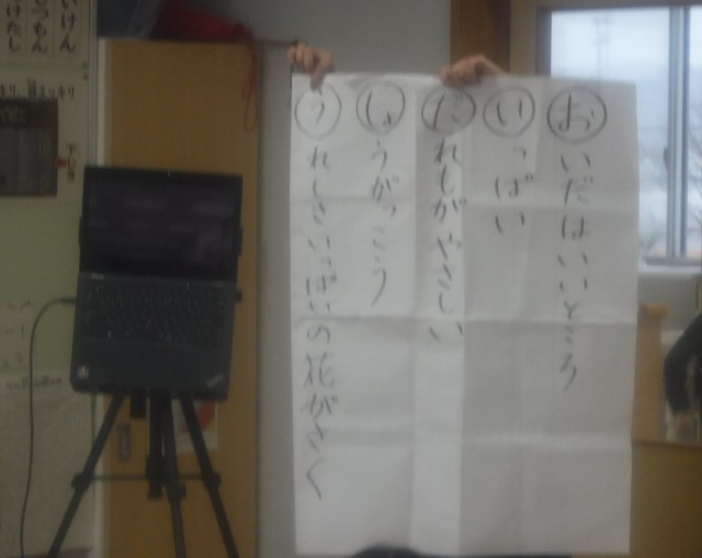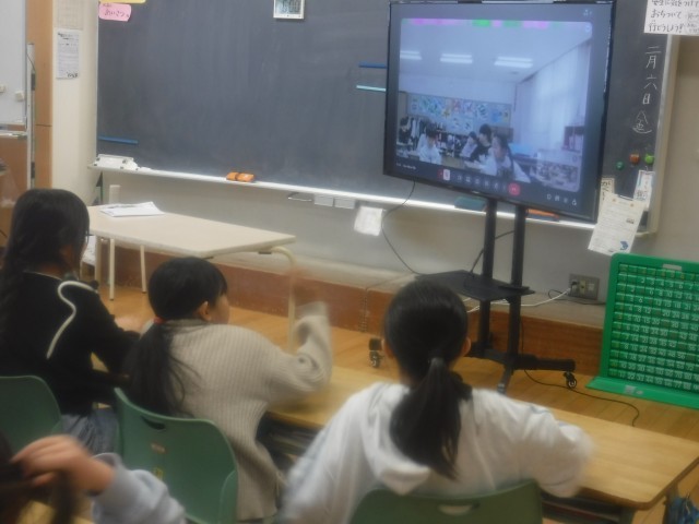 クラスルームのMeetを活用し、3校合同の授業を行いました。国語科「ことばを楽しもう」で、あいうえお作文の学習をし、それぞれが考えたあいうえお作文と各校の学校紹介をしました。学校紹介のあいうえお作文では、各校のいいところを紹介でき、他の学校のことが知れてよかったです。また、同じ2年生が考えたあいうえお作文を聞いて、楽しい交流になりました。