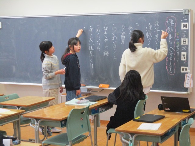今日は今年度最後の委員会活動がありました。5年生は、6年生に代わり委員会を進める体験をしました。どのように進めるか、担当の先生や委員長に事前に確認をし、委員会の時間には自分たちで話し合いを進めるなど頼もしい姿を見せていました。