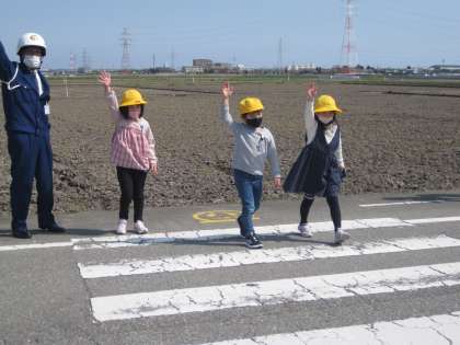 右・左・右を確認し、手を挙げて上手に渡ることができました。明日も交通安全を心がけて登校してください。