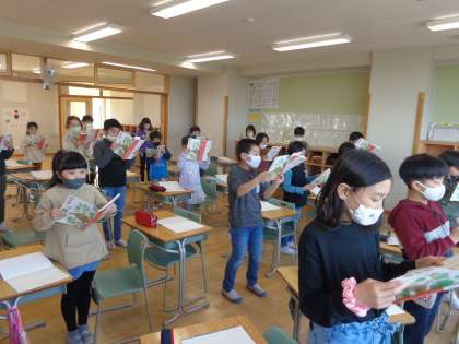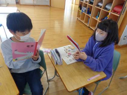 国語科「こんなところが同じだね」の学習では、友達と同じところを見つけ合い、盛り上がりました。また、国語科「春のうた」の学習では、楽しく音読をしました。