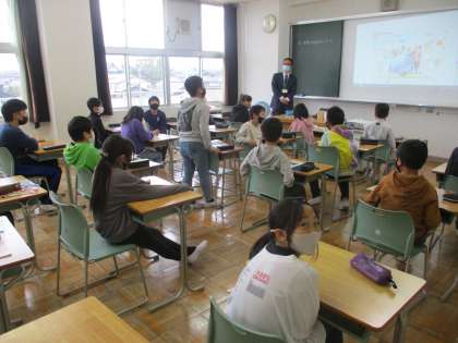 4月15日(水) 6年生 外国語科 公開日 2021/04/14 更新日 2021/04/15 6年生 今日は、今年度初めての外国語科の学習を行いました。子供たちは、英語で自己紹介するなど楽しく活動しました。