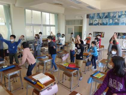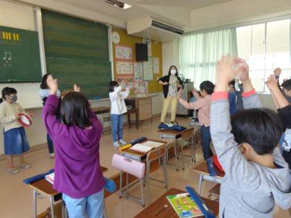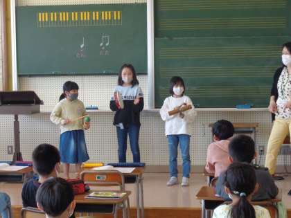 5時間目に音楽をしました。最初に「3時のおやつは」で体を動かし、リズムに乗って音を感じていました。楽しかったとの声があがっていました。