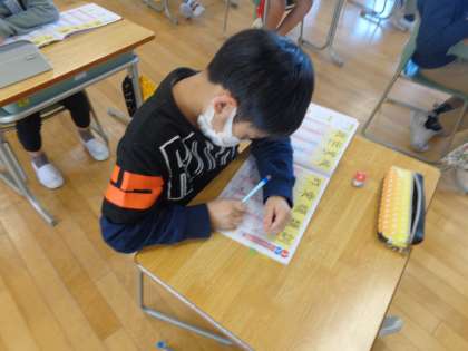 4月22日(木) 4年生 国語 公開日 2021/04/22 更新日 2021/04/22 4年生 あかねこ漢字スキルを使い、新出漢字を練習しました。子供たちは、とても真剣に指書きやなぞり書きに取り組んでいました。