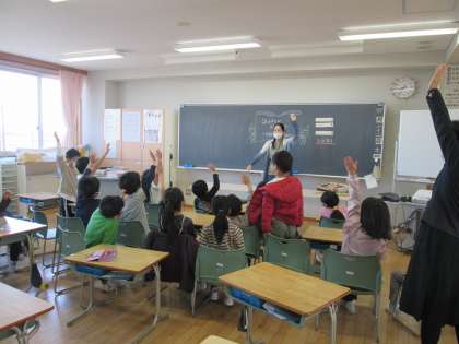 今朝はボランティアの方に読み聞かせをしていただきました。絵のない本と大型絵本を読んでもらいました。さらに手遊びまでしていただき、大喜びの子どもたちでした。今年度もたくさんのお話が聞けることを楽しみにしています。