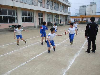 4月28日(水) 5・6年生 リレー練習 公開日 2021/04/30 更新日 2021/04/30 5年生 今日の体育科の学習では、リレーの練習を行いました。各団の5・6年生が話し合って走順を決める話し合いをした後、実際に走りました。競技が始まると声援も大きくなり、どの子供たちも運動会に向けて意欲が高まりました。