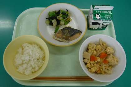 ・ご飯 ・牛乳 ・鰆の西京焼き ・お浸し ・親子煮 です。