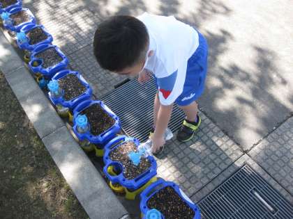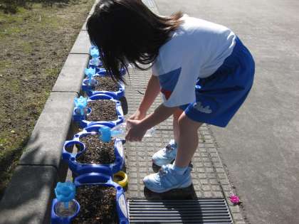 5月10日(月)1年 あさがおに水やり