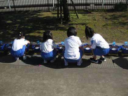 登校後、朝の準備を済ませてから、あさがおの水やりをしました。「しっかり咲いてね」「大きくなってね」と声をかけながら水やりをする姿がとても素敵でした。