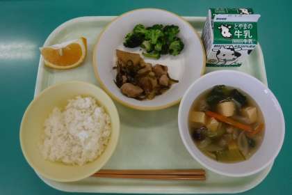 5月11日(火) 本日の給食 公開日 2021/05/11 更新日 2021/05/11 今日のひとコマ 今日の献立は、 ・ご飯 ・牛乳 ・豚肉と昆布の甘辛煮 ・ゆでブロッコリー ・中華スープ ・甘夏柑 です。 富山でよく食べられる昆布ですが、今日の甘辛煮は、新しく登場した給食メニューでした。