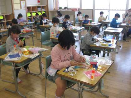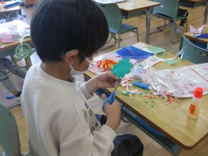 5月11日(火) 1年生 図画工作 ちょきちょきかざり