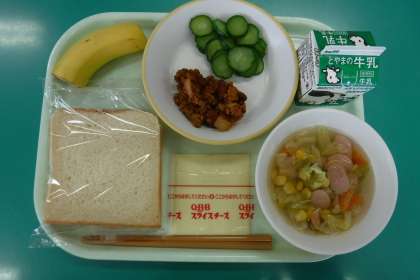 5月12日(水) 本日の給食 公開日 2021/05/12 更新日 2021/05/12 今日のひとコマ 今日の献立は、 ・食パン ・牛乳 ・きゅうりもみ ・チリコンカン ・キャベツスープ ・バナナ ・スライスチーズ です。 久しぶりに出た食パンに、チリコンカンやチーズを挟んでサンドイッチにする子供もいました。