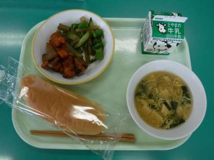 5月26日(水) 本日の給食 公開日 2021/05/26 更新日 2021/05/26 今日のひとコマ 今日の献立は、 ・コッペパン ・牛乳 ・鶏肉とレバーのケチャップからめ ・茎わかめサラダ ・ニラ玉スープ です。 レバーが苦手かと思いきや、食べられる子供が多くてびっくりしました。